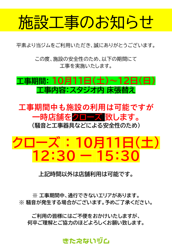 きたえないジムを都度払いで利用頂けます。 ※スタッフ滞在時のみ 上記記載のスタッフ滞在時間をご確認ください。 |